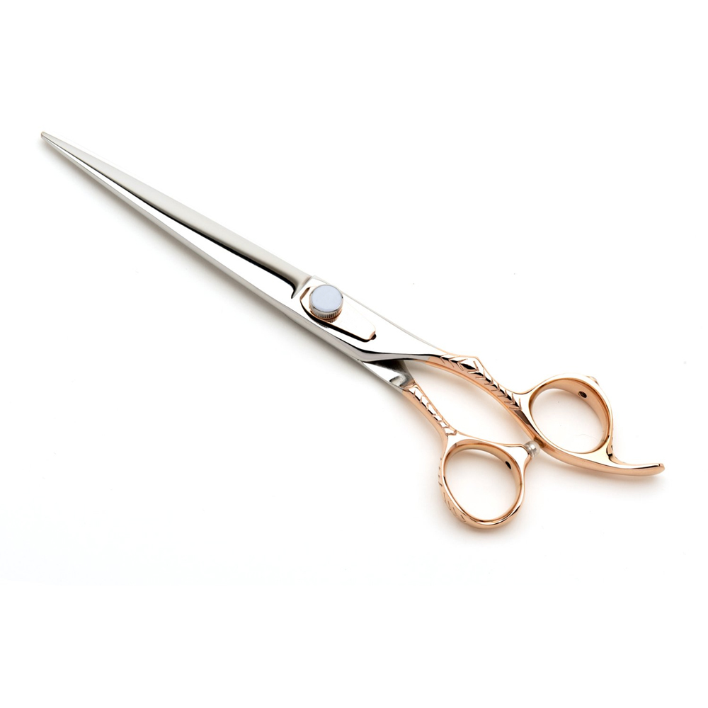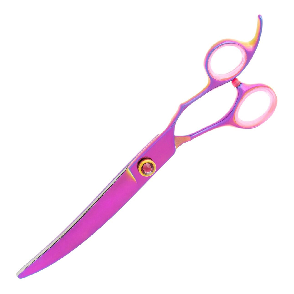 Crafted from Japanese 440c stainless steel, this beautiful curved grooming scissors for dogs has been ergonomically designed allowing it to be used in the natural hand position